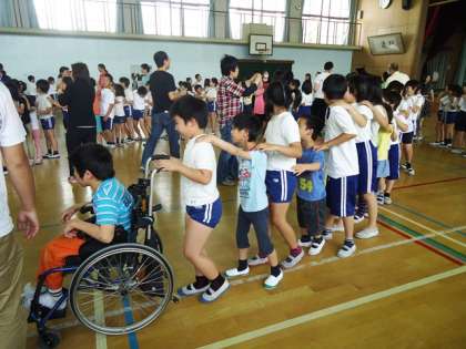 5月28日(木)久世西小学校で“南なかよし会”が行われ,南区の10校の育成学級のお友だちが集まって,今年度最初の顔合せ会をしました。最初の学校紹介では,本校の育成学級の児童3名も仲良く揃って,『4くみ』の紹介をすることができました。後半は久世西小学校の4年生児童も参加して,一緒に「かもつれっしゃ」をしたり,「また会える日まで」の歌を歌ったりして,仲良く交流を深めることができました。また今回は,育成学級の6年生児童が司会を担当し,会を上手に進めてくれました。1年間,いろいろな行事で交流をしていく予定です。