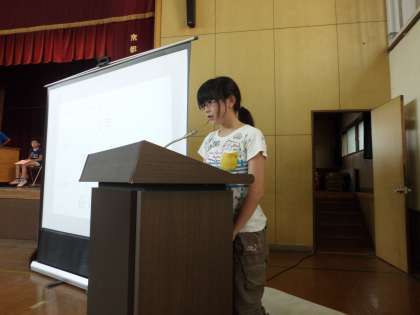 昨日のことになりますが,なかまタイムがありました。発表者・感想者の人達,6年生の発表は一番最後で緊張したと思いますが,よく頑張りました!「さすが6年生!」というような発表ができました。きっと下の学年の人達のよい見本になったことでしょう。児童会本部の6年生も頑張っていましたよ。