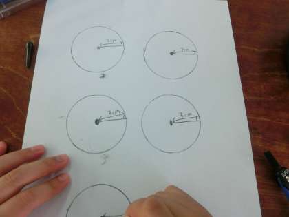 半径の長さを決めて,円をたくさん描きました。