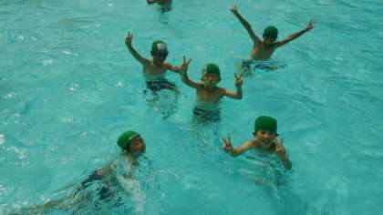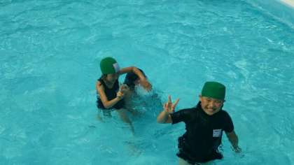 午後からは,またまたおたのしみの活動,プールです。楽しく活動しています。