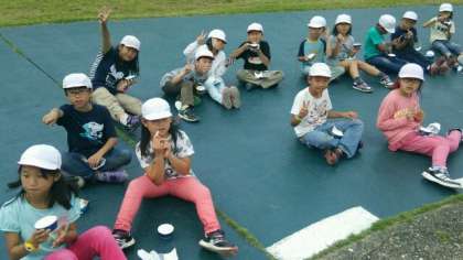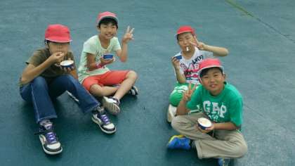 頑張っているみんなへのご褒美,アイスクリームです。みんなの顔がニタニタしてますね。