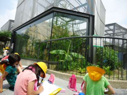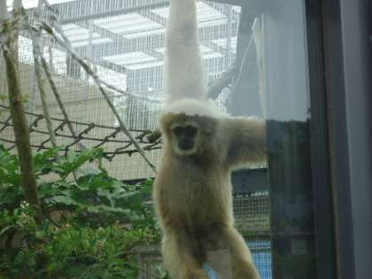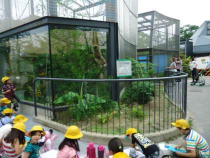 シロテテナガザル」が「いどうしている」ところを観察しています。