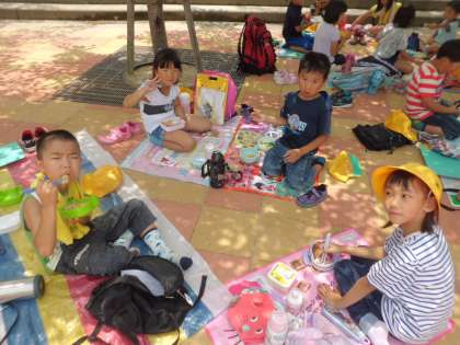今日は動物園に行きました。午前中はおとぎの国でテンジクネズミとウサギにふれ合った後,クラスで様々な動物を見て回りました。午後はお弁当を2年生と一緒に食べてからラリーをしました。楽しい一日を過ごせました。