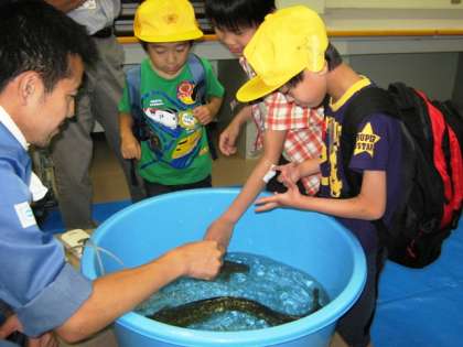 6月12日(金)は,育成学級の科学センター学習でした。4くみの3名の児童も前日から楽しみにしながら,当日参加しました。プラネタリウム学習では,“子の星”のお話を中心に,夏の星座について学習しました。実験室学習では4・5・6年生の児童が,“エコーマイク”の製作に取り組みました。自分で作った手作りのおもちゃがうれしくて,帰校後も教室で楽しそうに遊んでいました。今回は雨のため『屋外学習』が中止になってしまいましたが,展示学習と合わせて室内で一部を体験することができました。“フナ”や“ザリガニ”などの生き物をはじめ,恐竜や磁石・花火・砂漠の気候・体のしくみなどいろいろなコーナーを回って,たくさんの体験をすることができました。普段科学の世界にふれることの少ない子どもたちにとっては,とてもうれしい半日でした。次回は,10月“みなみなかよしフェスタ”(合同運動会)に参加する予定です。