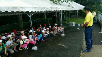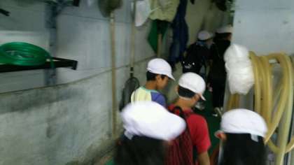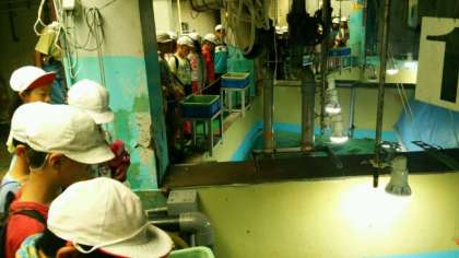 マリンランドに到着しました。マリンランドで餌やり体験をしています。水槽の上から餌をあげました。
