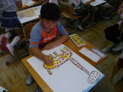 昨日の動物園の思い出を絵にしました。思い出すのを楽しみながらかいていました。
