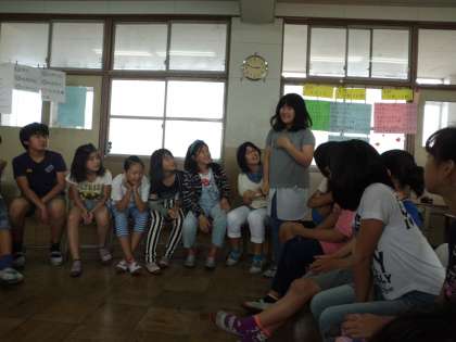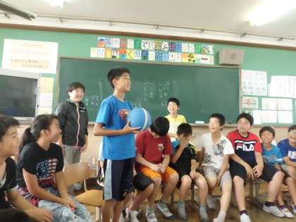 音楽が止まった時にボールを持っていた人がアウト。アウトになった人は,自己紹介をします。