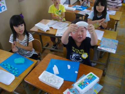 図工で「ひもひもねんど」を学習しました。子どもたちは,小学校初めてのねんど活動を楽しんでいました。