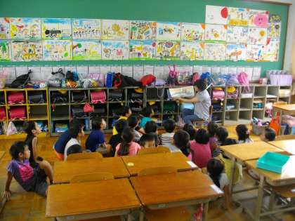 朝の時間を使った読み聞かせの様子です。題名は「たなばたものがたり」でした。