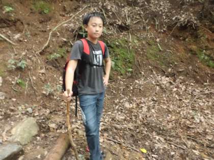 見つけた棒を杖代わりにして登っている人もいました。