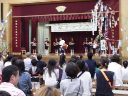 今日は,あんしんあんぜん上鳥羽推進委員会,PTA,おやじの会主催の「七夕の夕べ」が開催されました。あいにくの雨の中でしたが,たくさんの地域の方々が来てくださいました。子どもたちもたくさん参加してくれました。