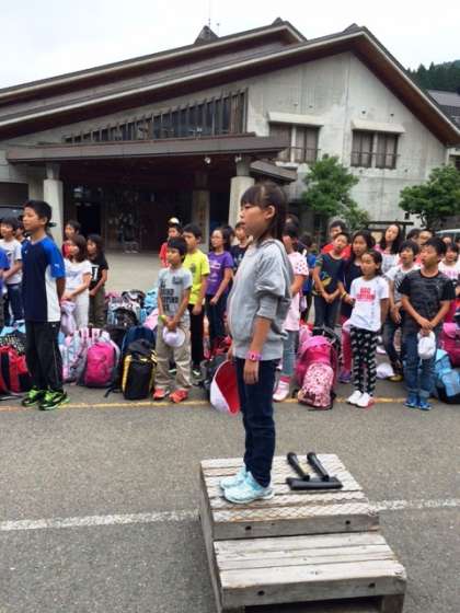 みんな元気に山の家に到着しました。いよいよ活動開始です。まずは,みんなの気持ちをひとつにと「入所式」行いました。