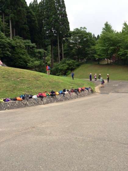 入所式を終えて,昼ご飯までの間,宿泊棟や野外水事情などの確かめをかねて,所内見学をしました。空模様が心配ですが今のところ雨は落ちてきていません。