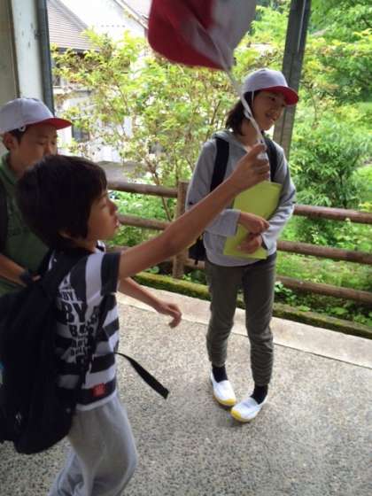 1日目の午後はまず本格的なテント設営から活動を開始する予定でしたが,夜の天気を考え本日はテント設営はおあずけです。その代わり,大変広い花背山の家で「館内ラリー」をグループ単位で実施しました。ラリーと言えば4年生みさきの家でも経験しています。活動の変更にもすばやく対応できている点は,さすが5年生ですね。