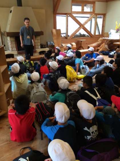 みんな元気に花背山の家のさらに山奥にある「交流の森」に到着しました。今晩,宿泊する「翠峰莊(すいほうそう)」のみなさんと挨拶をしました。ここは一般の宿泊施設で少しリゾート気分?になりそうですが,そこはしっかり自然体験をがんばりたいところです。「明日までお世話になります。どうぞよろしくお願いします。」