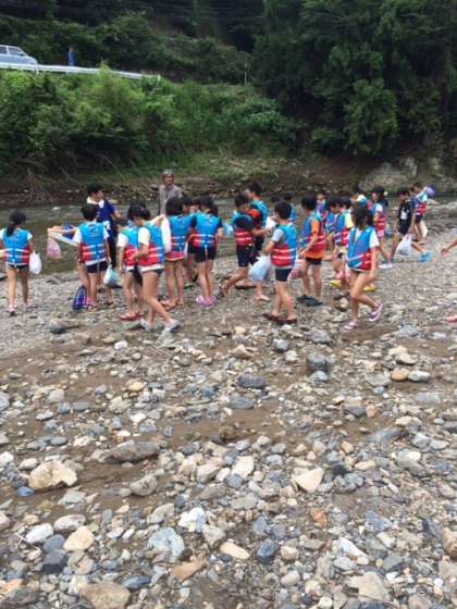長く続いていた雨が途切れ,久々の晴れ間が少し見られました。子どもたちは外の活動に大喜びでした。綺麗な清流で,希少昆虫を採取することができました。