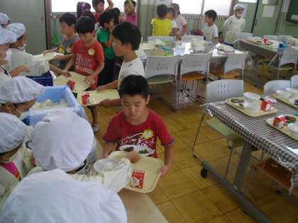 ランチルームでは,給食はセルフサービスです。子どもたちは,上手に進めていました。