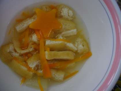 スープの中には,☆型のラッキーニンジンが入っていました。