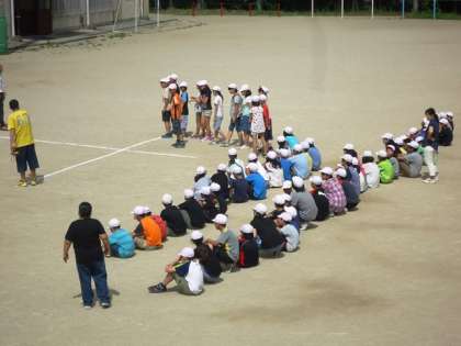 6年生のみんなが学校を代表して人文字の撮影会に臨みました。今年は京都市南区が誕生して60周年になるそうです。記念イベントのひとつとして南区の小学校11校で1文字ずつ運動場で人文字を撮影することになりました。上鳥羽小学校は「な」を担当しました。曲線が多い文字でしたが,うまく撮影ができましたよと,区役所の方から褒めていただきました。