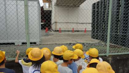 今日は,学校の周りには,消防設備がたくさんあるのか調べます。消火器や消火栓だけでなく,防火水槽も見つけることができましたね。