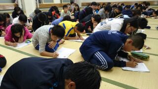 お風呂のあとはミーティングです。雨のため,残念ながら星空観察はできませんでした。明日に備え,全ての予定を前倒しにして早めの就寝にします。