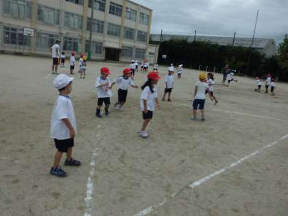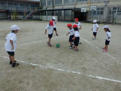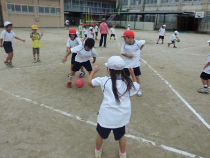 1年生全体でころがしドッジボールをしました。対戦を楽しんでいました。