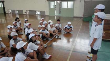 運動会に向けた練習が始まりました。今日は,学年競技の練習です。赤組も白組もリーダーとサブリーダーを中心に話し合う姿が見られました。
