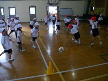 今日は,スポーツキッズでした。外野の人もありで,ころがしドッジボールをしました。みんなで体をいっぱい動かしてがんばりました。