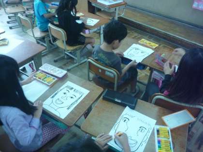 低学年は,自分の顔の旗を作って,運動会を盛り上げます。