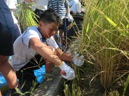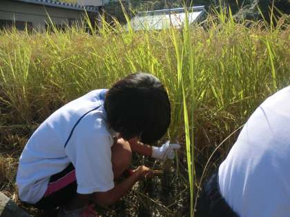 鎌を使って刈っていきます。最初は悪戦苦闘でしたが…
