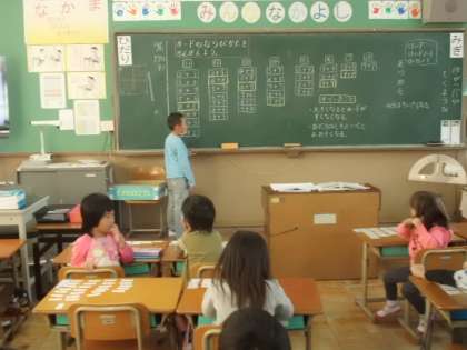 二人組でたしざんカードを並べてきまりを考えました。その後,みんなで発表し合いました。