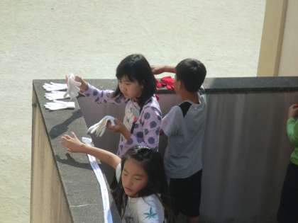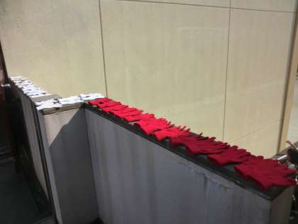 運動会の騎馬戦で使った手袋とハチマキを洗濯して