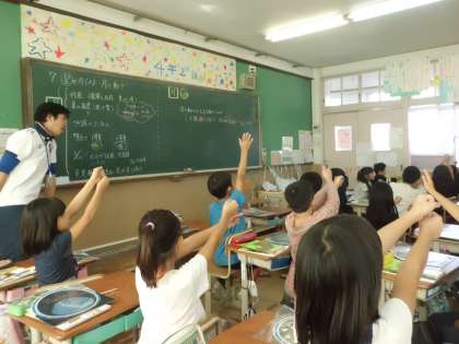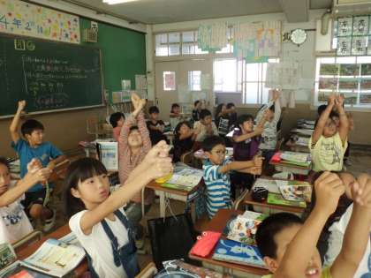 理科では、星と月の学習に入りました。今日は,月の観察の仕方について学習します。こぶし何個分で月がだいたい何度のところにあるのか調べることができます。早速,使うことができそうですね。