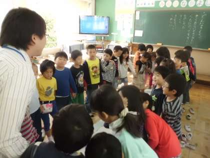 国語でやっている「くじらぐも」にみんなで乗ってみました。下に広がる世界を想像してみんな大喜びでした。