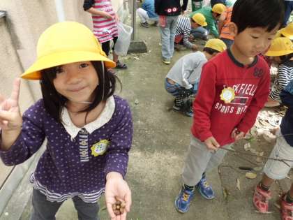 学校の中で,どんぐりをたくさん拾いました。今から何に使うのかみんなで考えていきます。