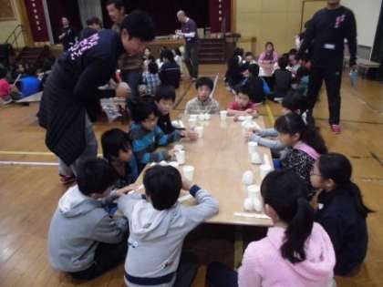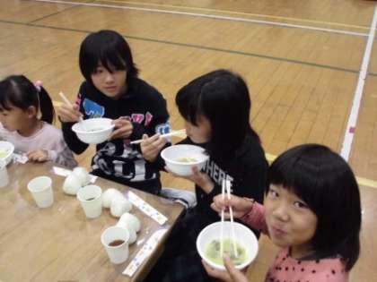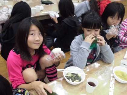 早朝より,準備してくださっていた朝ごはんをいただきました。おなかもちょうどいい具合に減っています。手づくりのあったかいおにぎりと具だくさんのあつあつのお味噌汁は,最高です!