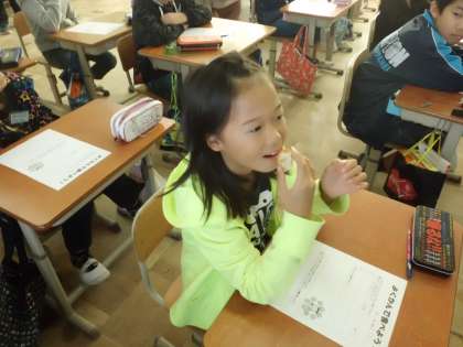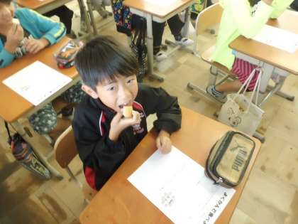 実際にフランスパンをかんで,かんだ時の感覚も確かめました。