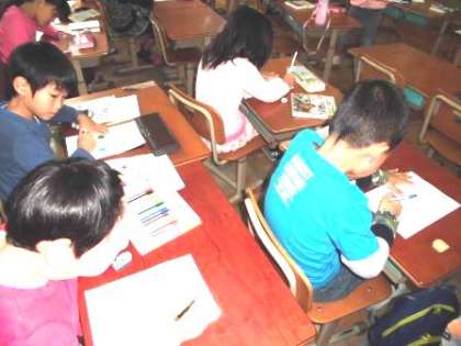 1,2年生も11時まで集中して学習していました。5月の頃に比べると,しっかり学習に向かうことができるようになりました。
