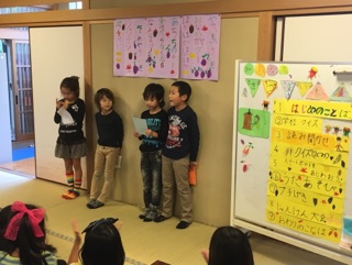 ここからはさつまいもづくりでお世話になった末広会の方も招いて,いっしょに楽しみます。,