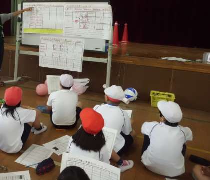 体育では,ハンドテニスが始まりました。チームで協力してたくさんラリーができるように活動しました。たくさん体を動かすことができましたね。