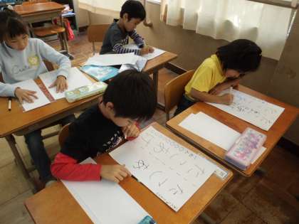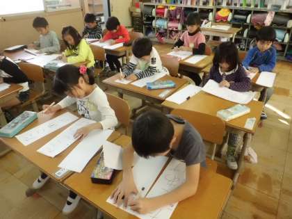 フェルトペンを使って「たこあげ」を書きました。真ん中に書くことが難しかったようです。