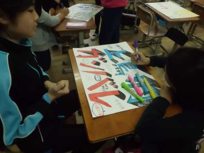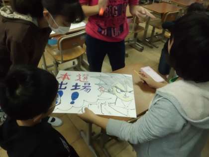 大文字駅伝支部予選まであと少しです。日々練習を頑張っている駅伝メンバーを応援するために,6年生の応援隊がポスター作りをしました。予選当日に「これを持って応援するぞ!」とみんな意気込んでいます。