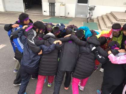 本番直前です。チームで円陣をくんで気合を入れました。