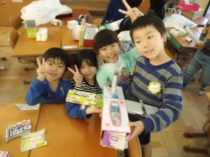 図工で,箱を組み合わせていろいろな形をつくりました。子どもたちの発想は,すごいですね。