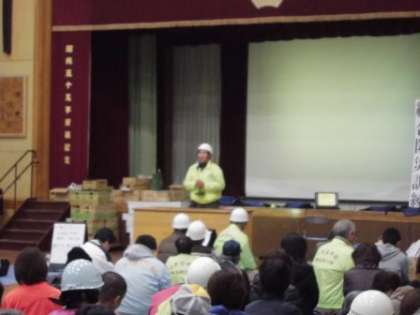 体育館は,防災訓練に参加された地域の方々でいっぱいになりました。自主防災会会長,自治連合会会長,南区長からご挨拶がありました。みなさん,大変熱心にお話を聞かれていました。