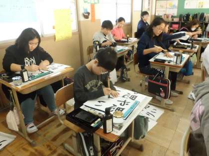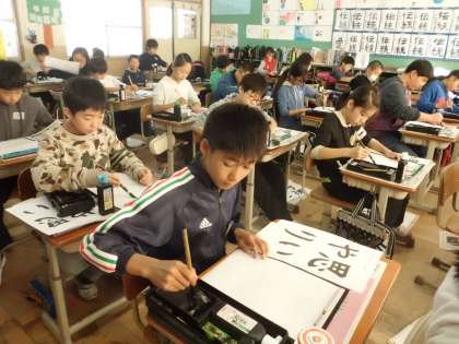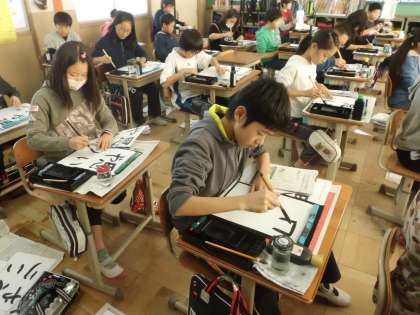 書写の学習で,「思いやり」という字を毛筆で書きました。一画一画ていねいに書き,満足のいく作品に仕上がりました。人権月間の間,教室に掲示します。