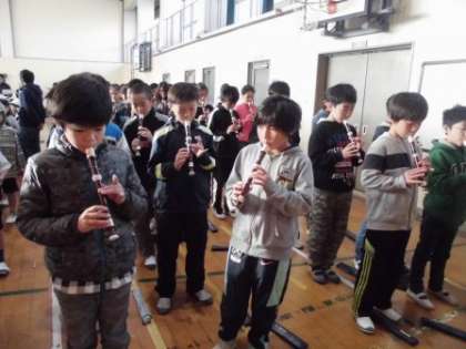 今日の児童朝会では,校長先生のお話,児童会からの連絡,委員会からの連絡の他に,全校合唱をしました。曲名は,「語り合おう」です。10月から各クラスで歌ってきた歌を,今日は全校で歌いました。6年生は,部分的にリコーダーを演奏し,1年〜5年生の歌ときれいなハーモニーを作ってくれました。
