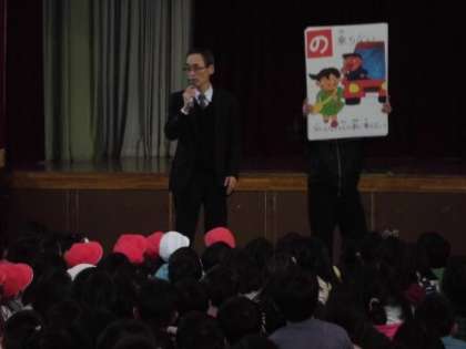 その後,体育館に集まり,南警察署の方から,「いかのおすし」(いかない,のらない,おおごえでさけぶ,すぐにげる,しらせる)のお話をしていただきました。大声を出す練習や,近くの家や店に駆け込んだりすることの大切さについてのお話もありました。