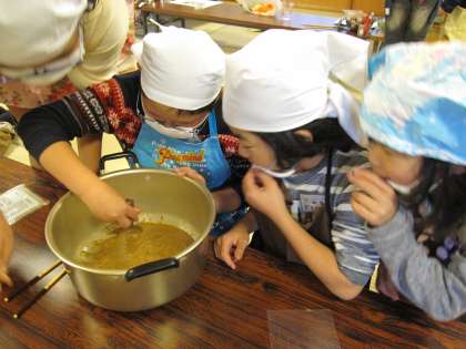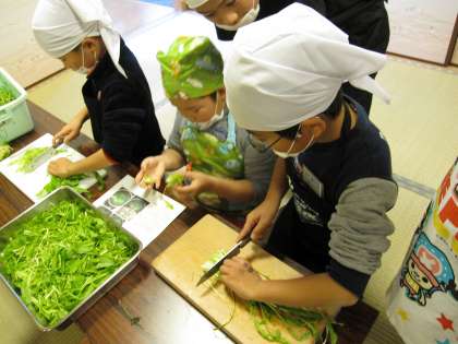 4年生 収穫祭がありました 壬生菜のおひたし編
