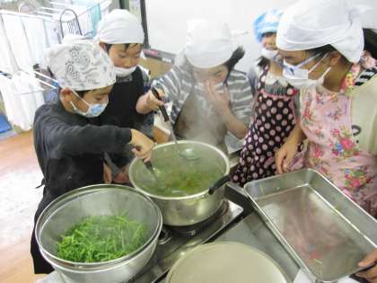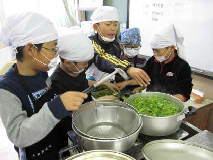 4年生 収穫祭がありました 壬生菜のおひたし編その3
